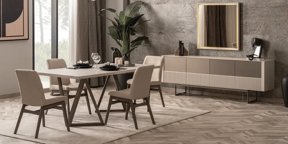 İnegöl Mobilyası’nın şık ve fonksiyonel yemek odası takımları, sevdiklerinizle keyifli sofralar kurmanız için tasarlandı. Estetik detaylar, kaliteli malzeme ve dayanıklı yapısıyla yemek alanınıza zarif bir dokunuş katın.